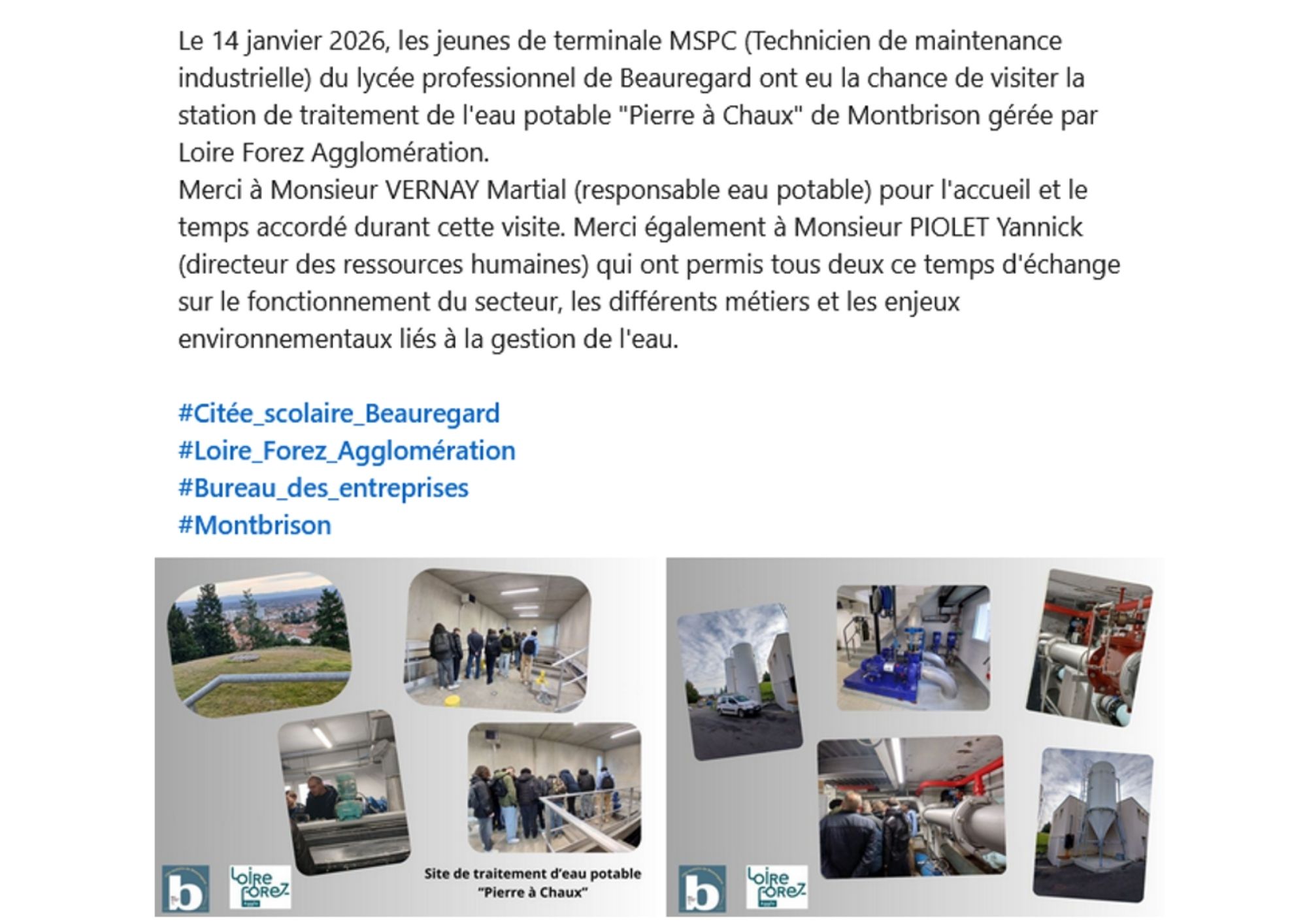 Le 14 janvier, découverte par les élèves de Terminale MSPC de la sation de traitement de l'eau potable "Pierre à Chaux"
