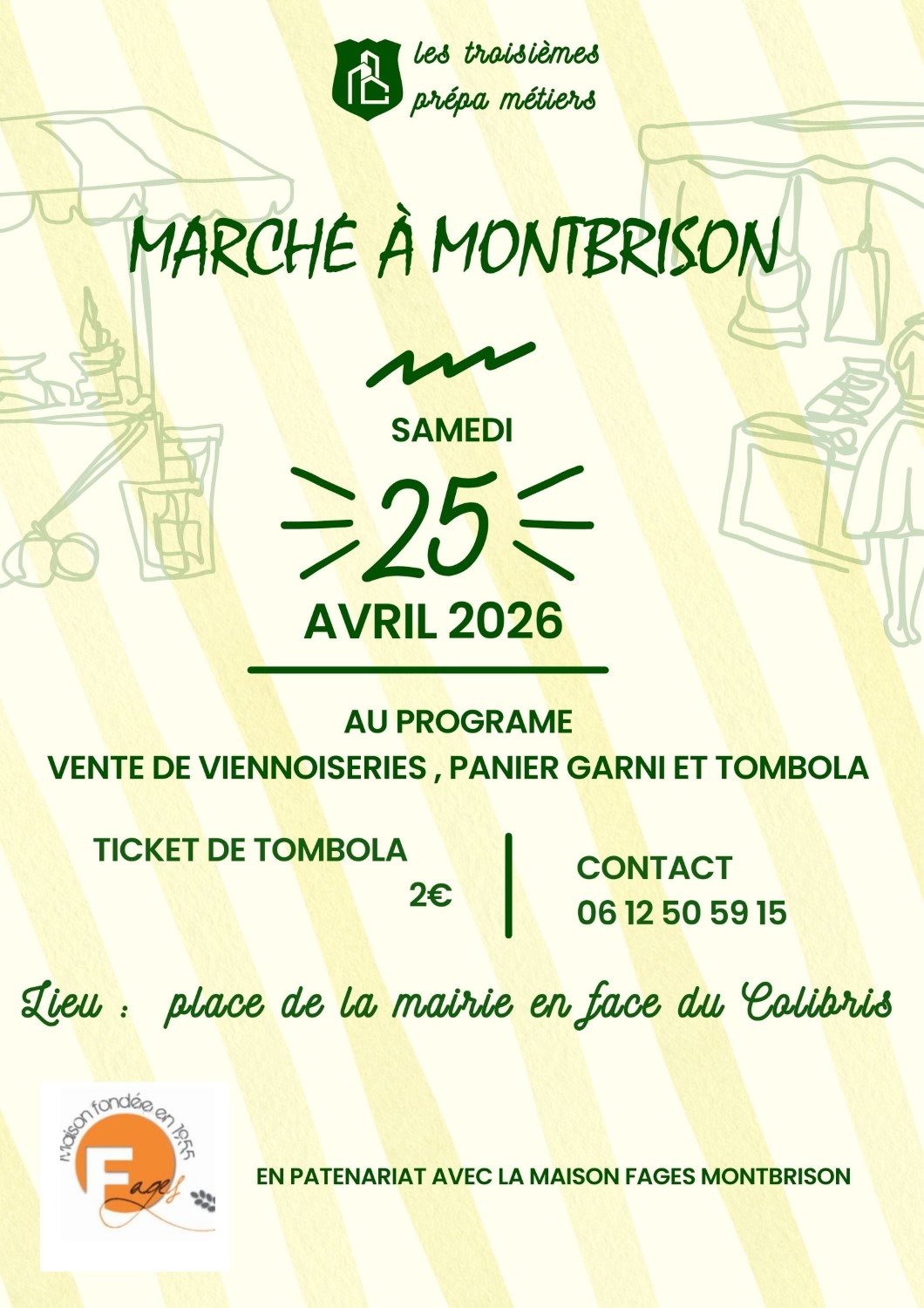 Les 3ème Prépa Métiers seront présents sur le marché de Montbrison à la rencontre des Montbrisonnais. Il proposeront à la vente des viennoiseries, des panier garni et tombola.