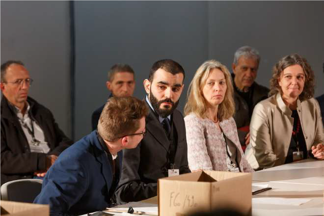 Jeudi 20 novembre 2025, dans le cadre du cours d’histoire-géographie-EMC, les élèves de terminale 2 se sont rendus aux Archives départementales de la Loire pour assister à une représentation exceptionnelle de la pièce « Jouer l’archive, octobre – décembre 1940 ». Ce spectacle, mis en scène par Keti Irubetagoyena en association avec l’historien Marc-Olivier Baruch, s’inspire d’un document conservé aux Archives nationales : le verbatim d’une réunion de hauts-fonctionnaires d’Etat pour mettre en œuvre le 1er statut des Juifs adopté par les autorités du régime de Vichy. Placés à la table de réunion, au milieu des acteurs, les élèves ont pris conscience de la mise en œuvre bureaucratique et brutale d’une législation discriminatoire, première étape vers l’accomplissement du processus génocidaire pendant la Seconde Guerre mondiale.