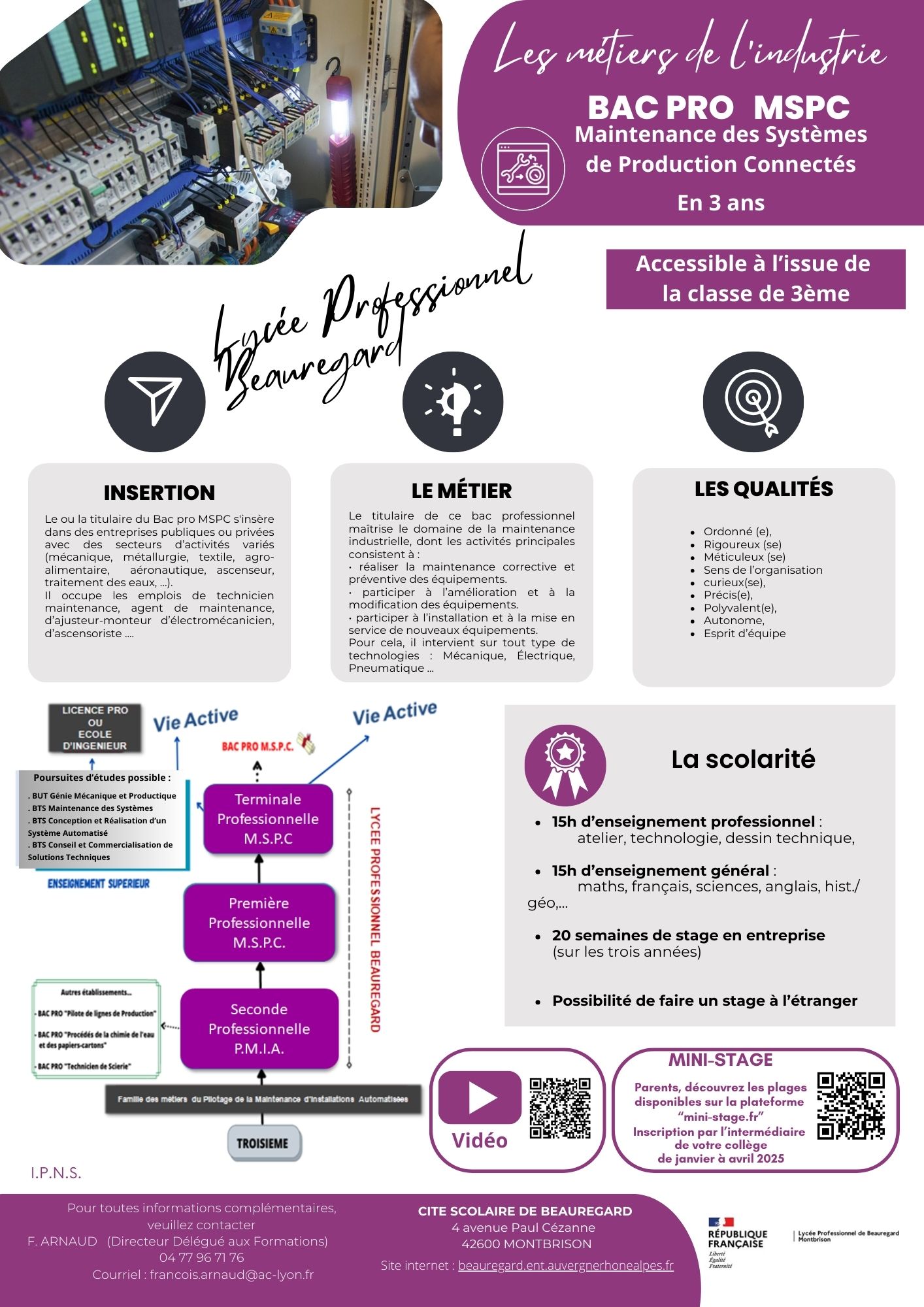 BAC PRO Maintenance des Systèmes de Production Connectés (M.S.P.C.), rentrée 2026.