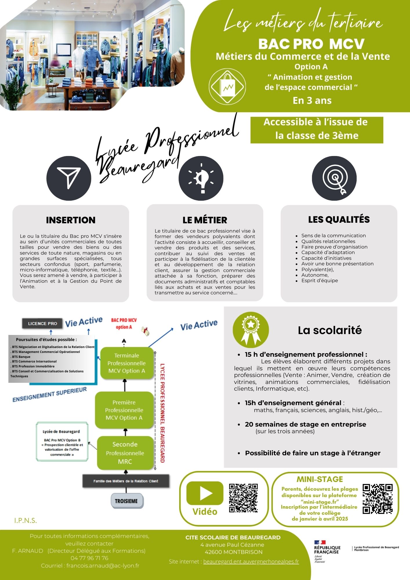 BAC PRO Métiers du Commerce et de la Vente - option A (MCV), rentrée 2026.