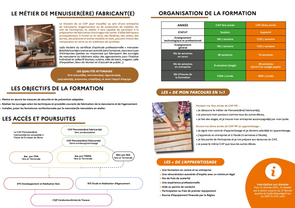 CAP Menuisier-Fabricant par le CFA-GRETA Loire sur le site de la cité scolaire de Beauregard à la rentrée 2025.